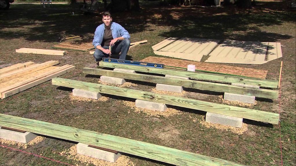 Then, lay 4×4 posts down as support beams. One by one you can lay 2x4s atop the support beams, hammering into place. This process does not take long.