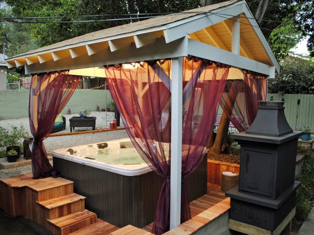 A great spot to place your tub can be under a gazebo or an umbrella. It offers some protection and privacy, without taking away from the outdoor aspect.